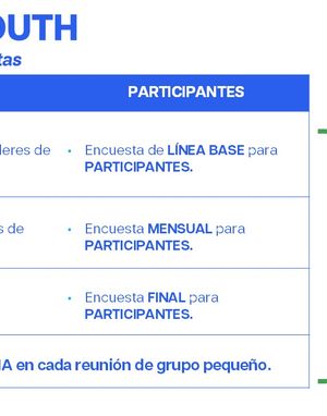Resumen de encuestas a realizar sobre la intervención Alpha Youth. Las encuestas están disponibles en la aplicación del Ciclo del Programa, una vez se active la intervención. La intervención debe activarse cuando esté cerca de iniciar la implementación.