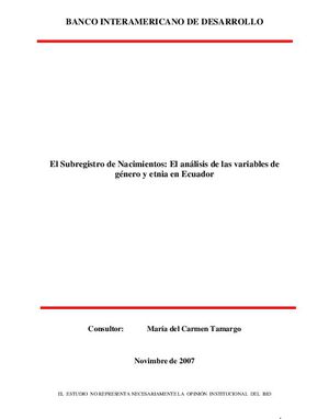 El objetivo principal de la consultoría fue el de cacterizar el estado de situación de la población indígena y afroecuatoriana en relación al subregistro de los nacimientos y el acceso al documento de identidad. El resultado esperado consistió en identificar los nudos críticos con la finalidad de formular propuestas y recomendaciones de acción, para mejorar dicha situación. La metodología utilizada se basó en entrevistas en profundidad, grupos focales y recopilación y análisis de información estadística.